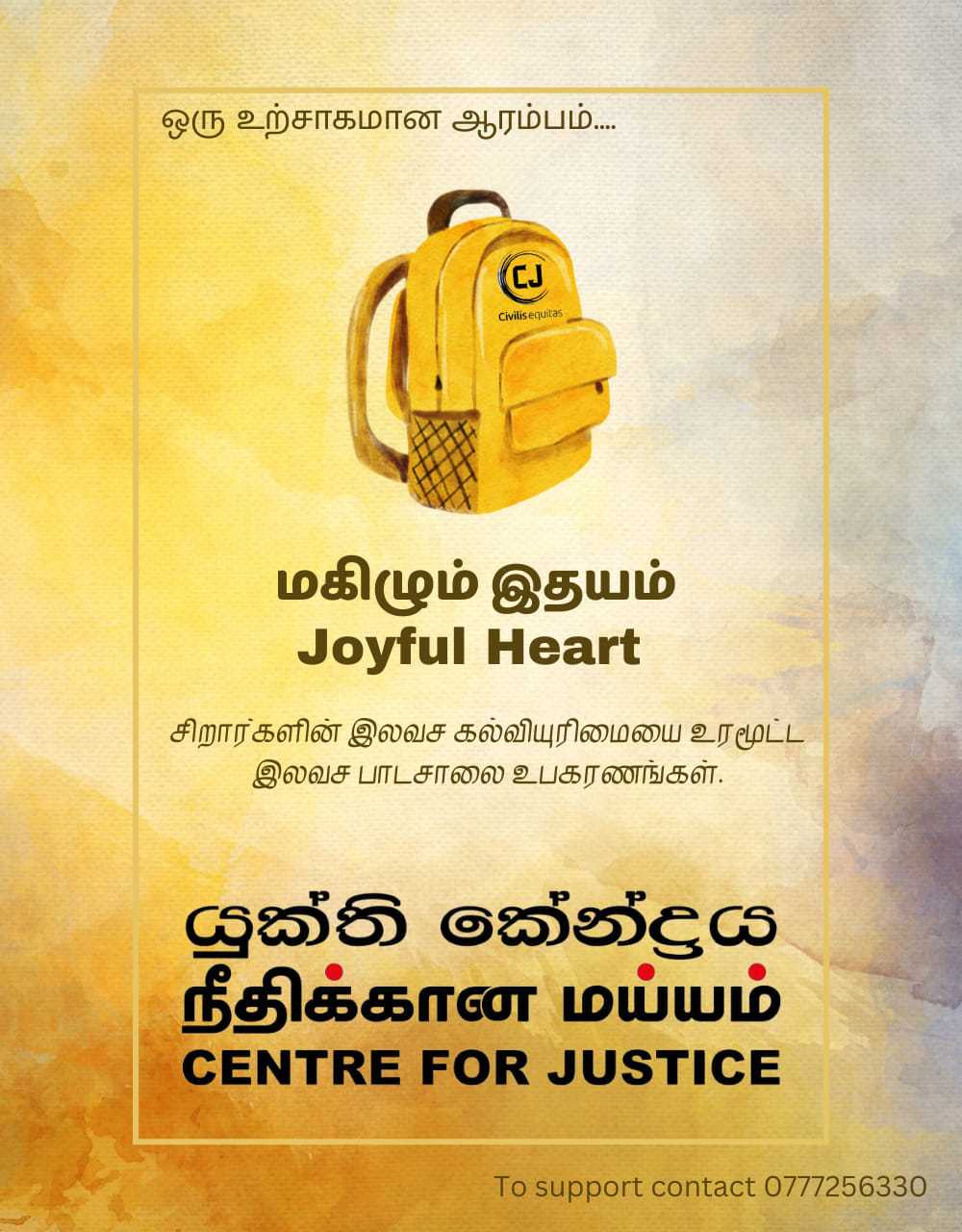 The Centre for Justice (CfJ), through its Makilum Idhayam (Joyful Heart) project, successfully organized a free distribution of school supplies on Thursday, the 12th, at Kalmunai Zahira School.